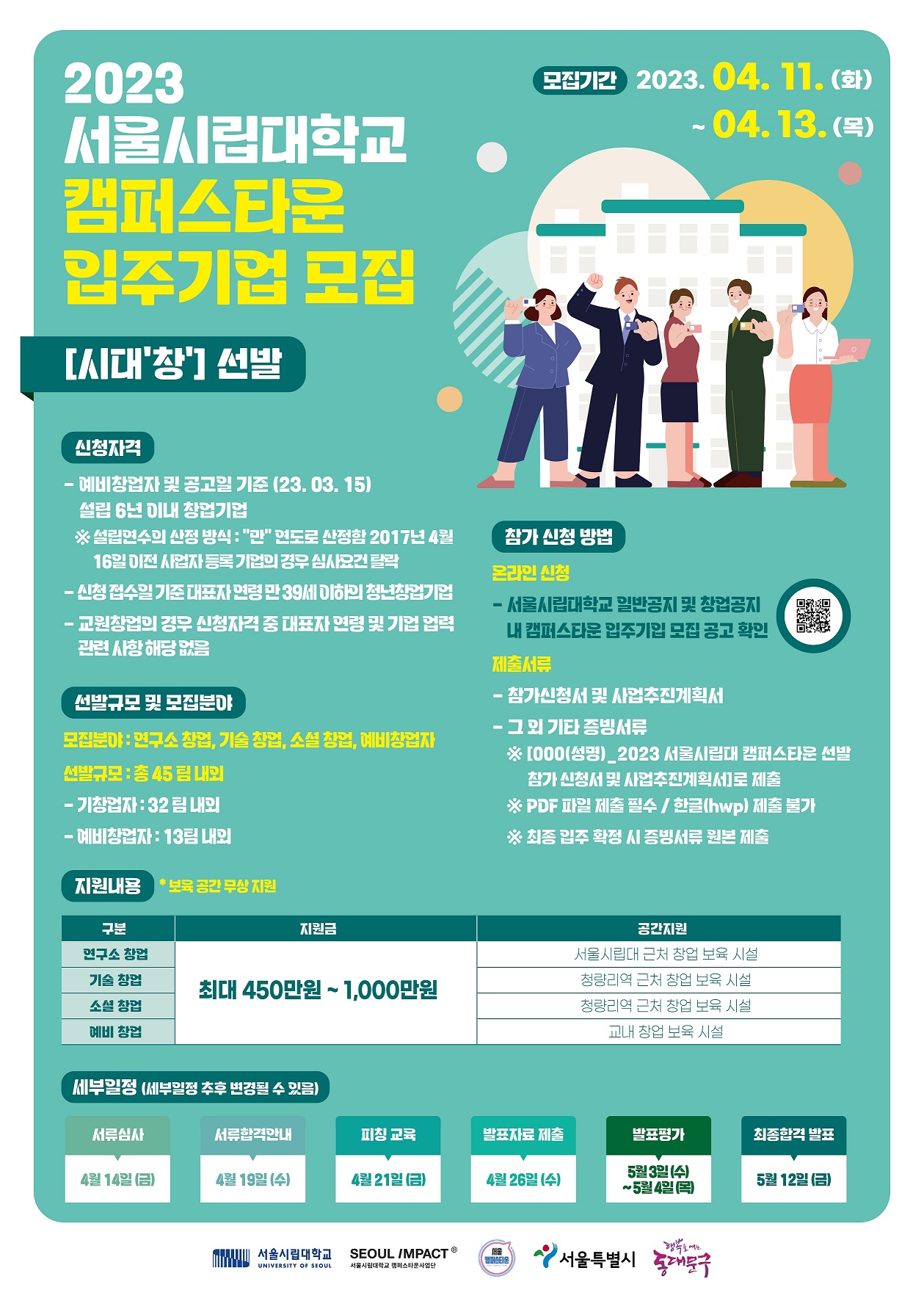 [서울시립대학교 캠퍼스타운 입주기업 모집 ‘시대 창’ 선발 안내]